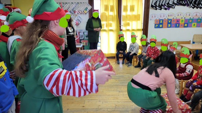Questa mattina sono arrivati a sorpresa alla scuola dell’infanzia gli elfi di Babbo Natale e hanno consegnato ai piccoli dei doni per le sezioni.